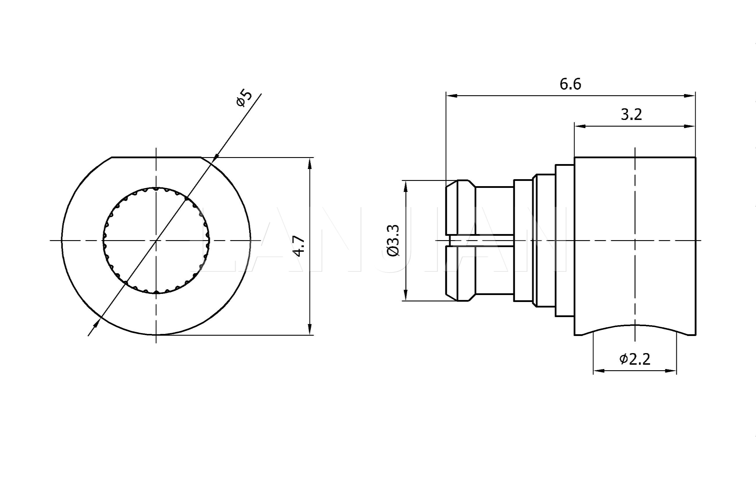 商品描述:SMP straight jack connector,40GHz (high frequency receptacle)